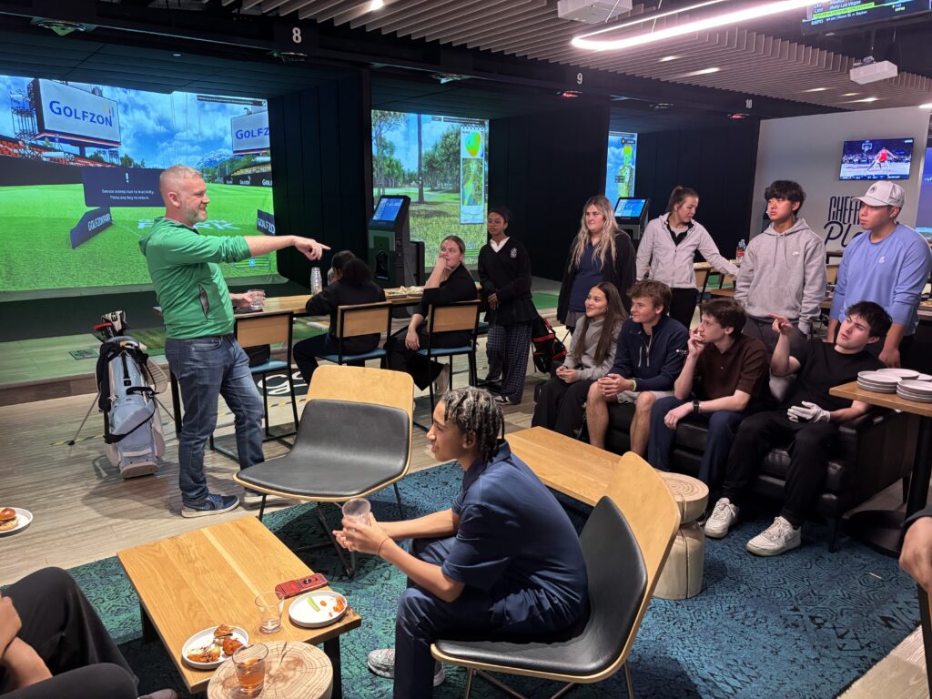 The first event, held at Golfzon Social in Scarsdale, brought together 16 participants from across FTMNY programs for an immersive Sports Tech Lab experience. Led by AWS representative Michael Murphy, students were introduced to the role technology plays in sports and the wide range of careers available within the field. Throughout the session, participants engaged with cutting-edge technology, explored AWS platforms, and asked thoughtful questions about future career paths. A standout moment included the introduction of AWS Educate, a training platform available to students ages 13 and up, with opportunities for scholarships and hands-on learning experiences. Murphy also shared that First Tee participants are given priority consideration for AWS internships, opening the door to meaningful opportunities well beyond the course. For many students, the experience sparked new curiosity and expanded their understanding of what is possible.